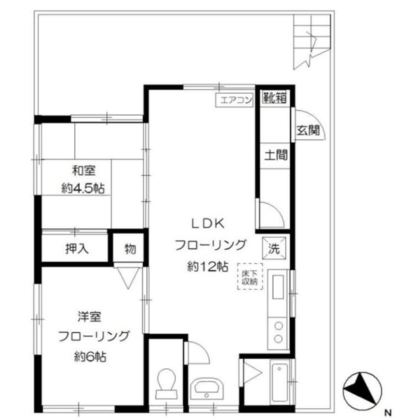 | 設備 | バス・トイレ別、洗面所、洗面台、シャワー、トイレ、ガスコンロ可、収納スペース、シューズボックス、室内洗濯機置場、給湯、フローリング、都市ガス、エアコン、バルコニー |